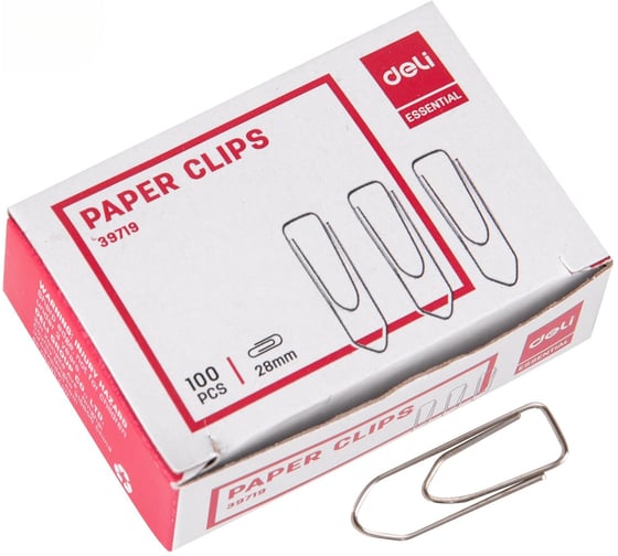 Металлические скрепки DELI, треугольные, 28 мм, упаковка 100 шт, в картонной коробке по 10 упаковок