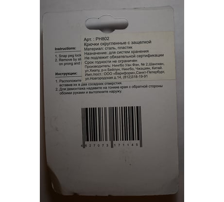Скругленные крючки 1,58 см с защелкой для перфопанелей 8 шт AVVA PH802A На страницу товара515 ₽