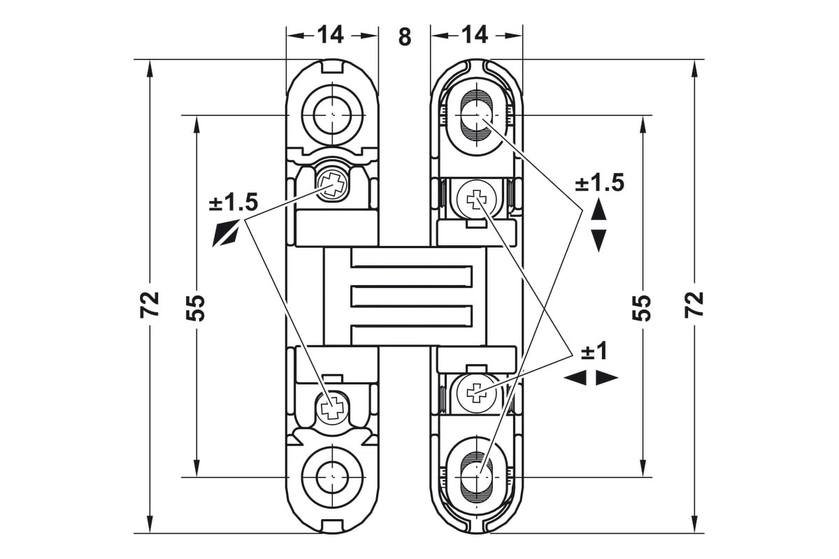 Технические характеристики скрытой петли Hafele хром матовый, заглушка серая