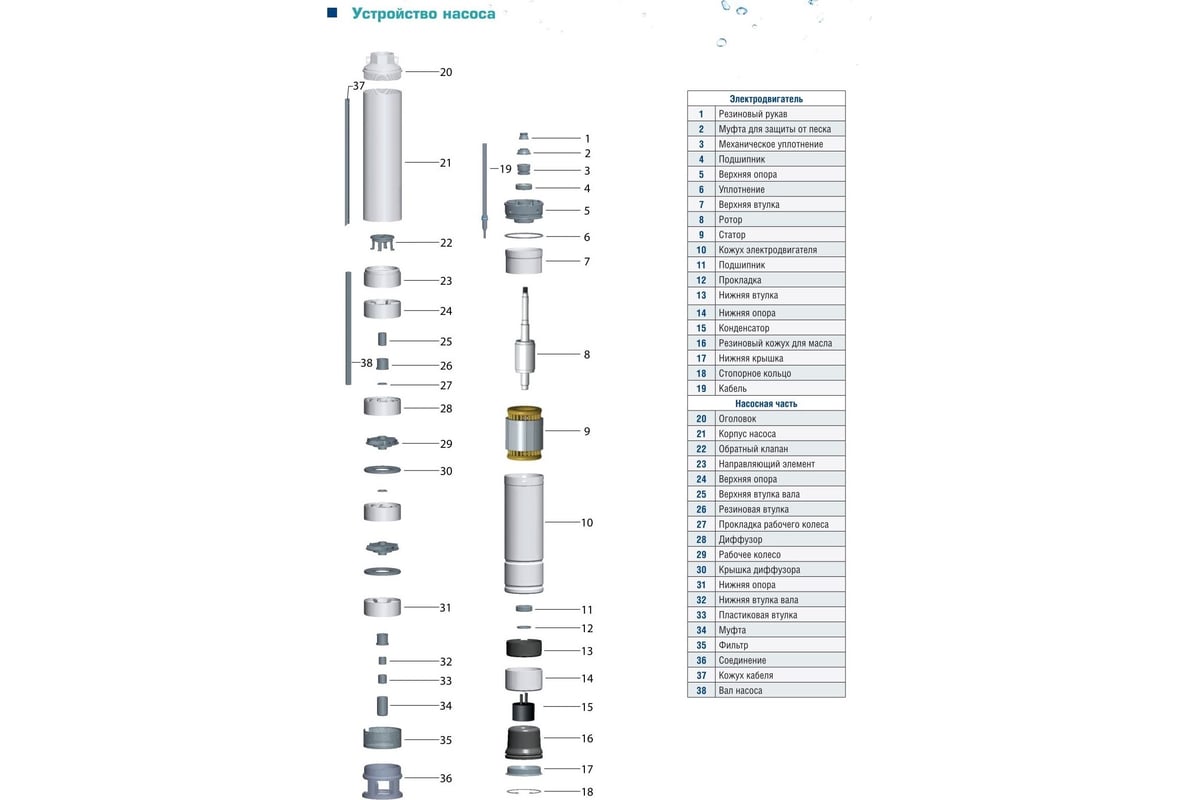 - Перекачивает чистую воду, с содержанием песка не более 150 г/м3;