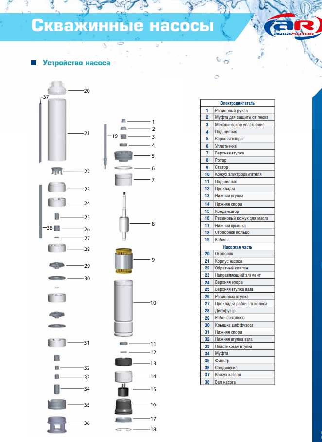 Скважинный насос AquamotoR AR 3SP 3-84 C с кабелем 40м AR151013