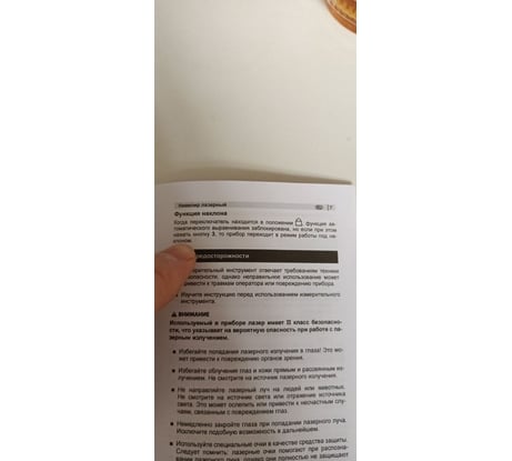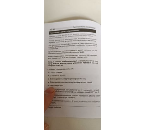 Заявлены дополнительные функции, которых нет. Нет отвеса вверх/вниз. Функция установки луча под наклоном работает не так, как заявлено - самовыравнивающаяся головка не фиксируется при наклоне, при зажатии красной кнопке просто отключается звуковой сигнал, а головка не фиксируется и продолжает болтаться. Если перевести фиксатор в положение "замок закрыт", чтобы головка не болталась, прибор полностью отключается и на кнопки не реагирует. Таким образом невозможно установить луч под наклоном в пределах самовыравнивания (+-4 градуса), а для больших углов надо поворачивать осторожно, чтобы головка не болталась.