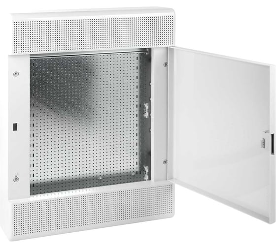 На передней панели щитка имеется перфорация, которая способствует эффективной вентиляции установленного оборудования.