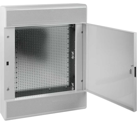 На передней панели щитка имеется перфорация, которая способствует эффективной вентиляции установленного оборудования.