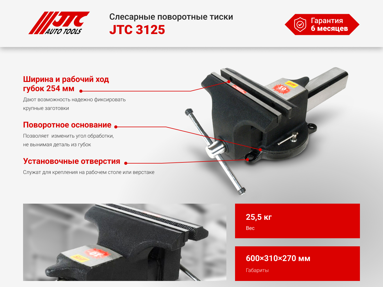 Слесарные поворотные тиски с захватом 10 дюймов JTC 3125