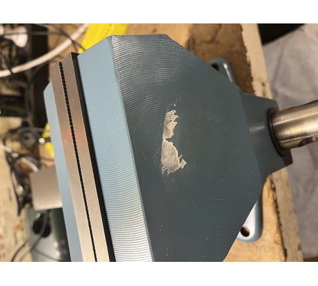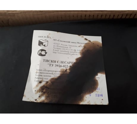 Малая площадь контакта основания с поверхностью верстака (стола) что требует твёрдой столешницы для избежания продавливания - либо металлического стола, либо металлическую подкладку. Информационная табличка сделана для "галочки" - клейкая этикетка приклеена поверх масла, понятное дело отваливается.