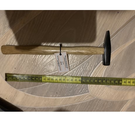 Маленький молоточек, с хорошей ручкой, покрытой лаком. Головка держится. Боёк со срезанными краями.