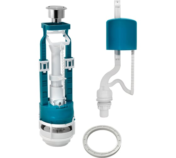 1-режимный кнопочный универсальный механизм слива "СБкпм" в комплекте в комплекте с нижним наполнительным клапаном НпрН (противодавления).