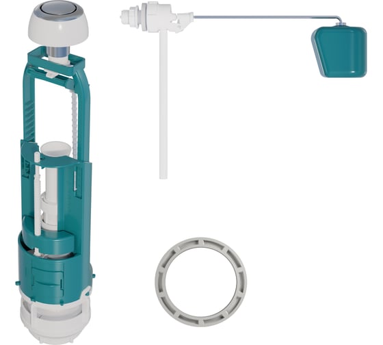 Комплект арматуры для бачка к унитазу. Универсальный сливной клапан СБкпм кнопочный с одним режимом слива (для слива необходимо нажать на кнопку смыва).