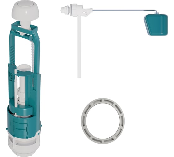 Комплект арматуры для бачка к унитазу. Универсальный сливной клапан СБкпм кнопочный с одним режимом слива (для слива необходимо нажать на кнопку смыва).