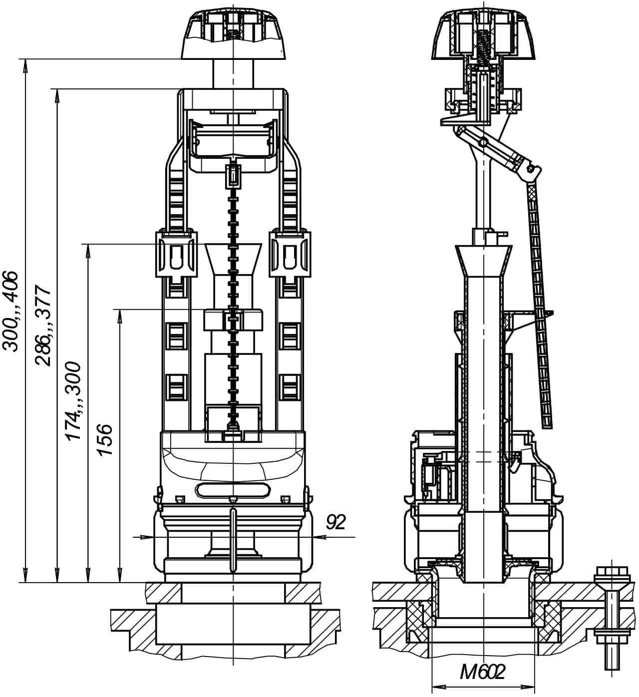 Сливной клапан СБкпм предназначен для использования в смывных бачках высотой от 290 до 405 мм и с диаметром отверстия в крышке бачка 40 или 26 мм.