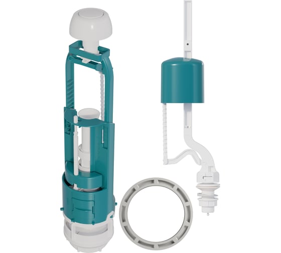 Комплект арматуры для бачка к унитазу. Универсальный сливной клапан СБкпм кнопочный с одним режимом слива (для слива необходимо нажать на кнопку смыва).