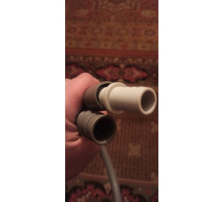 Резиноподобные оконечники очень короткие, а сам шланг имеет меньший чем они диаметр, на стандартный патрубок надеть не удалось