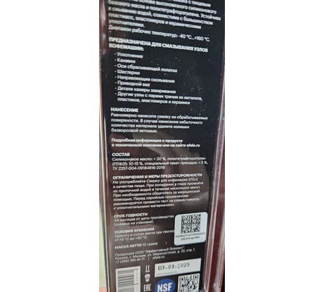 Хорошая недорогая смазка. Использовал для кофемашин. Наносить удобно.