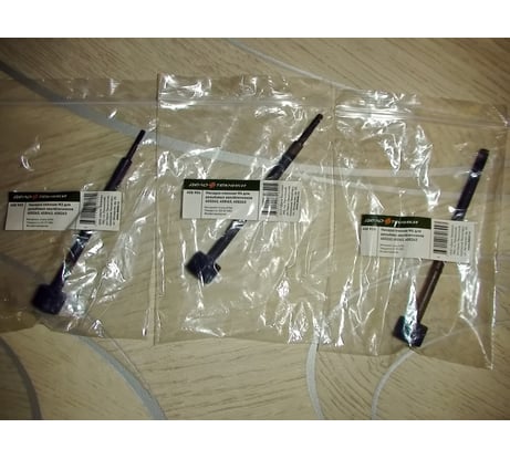 Вчера получил ещё 2 некомплекта дополнительных насадок с резьбами М3 и М6 от производителя "Дело Техники". Почему присылают вместо двух деталей только одну - понять не могу, т.к. недостающие, выравнивающие втулки которые присутствуют на фото товара, присылаемые резьбовые штоки делают бесполезными железками. Странная тактика у производителя, однако ... (На снимках: пришедший товар в магазин и его нормальный, рабочий комплект при заказе.