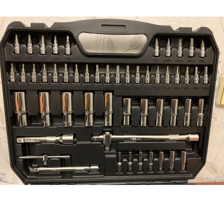 Не знаю почему этот набор недооценён. Очень хороший набор, прочный кейс, застежки не люфтят, при переворачивании и тряске весь инструмент остаётся на своём месте. Для гаража есть все необходимые насадки на все случаи жизни. Брали отцу для гаража, до сих пор доволен, качество всех насадок отличное. По глупости конечно можно любой инструмент сломать. Единственное добавил бы смазки в трещотку на всякий. А так всё устраивает. Берите не пожалеете
