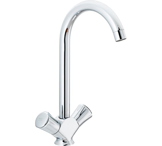 Изготовлен из силумина, с покрытием хром. Смеситель крепится к раковине с помощью накидной гайки, которая располагается под мойкой. Она накручивается на нижнюю часть цилиндрического корпуса самого крана, которая располагается под раковиной. Высокий поворотный излив оснащен аэратором, который существенно понижает уровень шума. Управление водой производится при помощи керамической кран-буксы, 90 мм.