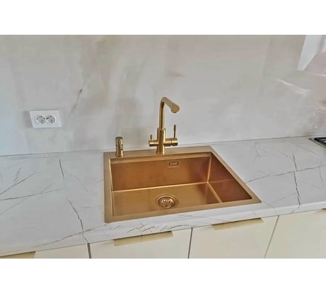 Установил без проблем на каменную мойку. Никаких замечаний по установке. Приятный, плавный ход ручек. Общее впечатление как о добротном и аккуратно выполненном изделии. Есть один момент. Если захотите заменить комплектную гибкую подводку, обратите внимание, что более толстые трубки могут не поместиться в резьбовом основании и пластиковой втулке. Я оставил штатную подводку, которая выглядит вполне прилично.
