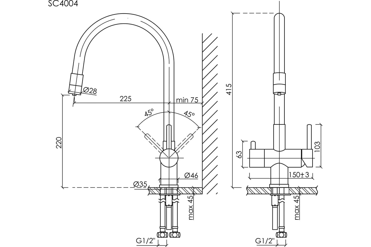 Смеситель для кухни Lucia с возможностью подключения фильтра для воды, цвет матовый черный Sancos SC4004MB