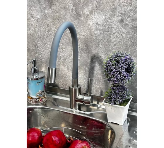 Смеситель для кухни однорычажный ViEiR нержавеющая сталь, с гибким изливом, сатин/серый V15031-H