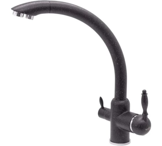 Смеситель для кухни под фильтр ViEiR однорычажный латунный высокий С-образный излив черный оникс для дизайнерской кухни V15003-C1