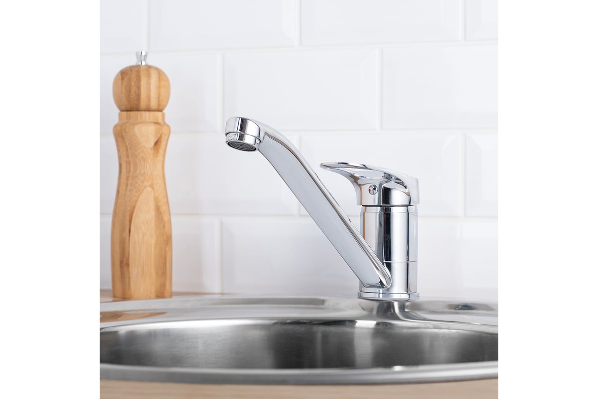 Смеситель для кухни выполнен в современном дизайне. Он удачно дополнит мойку любого размера и конфигурации.