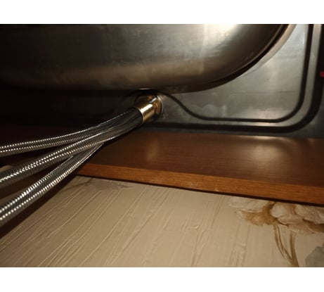 Смеситель, в целом, понравился. Для облегчения монтажа нужно выкрутить кольцо с резинкой с торца смесителя. В кольцо вкрутить резьбовую монтажную втулку. Прикрутить на штатные места шланги подводки (по одному просовывая в резьбовую втулку, которая вкручена в кольцо). Втулка с кольцом легко вкручивается в смеситель после монтажа всех трех гибких шлангов подводки. Шланги не мешают. Для надежности конструкции пластиковый переходник на фильтр сначало вкрутил в удлинитель 15 мм, через силиконовую прокладку, и на удлинитель накрутил шланг подводки.