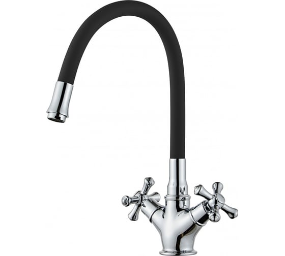 Свойства: Корпус выполнен из латуни с гальваническим покрытием, что повышает износостойкость и устойчивость к влаге. Конструкция двухрычажная, с традиционными крестовыми вентилями и керамической кран-буксой для плавного и точного управления потоком воды. Гибкий излив традиционной формы, черного цвета, с резьбовым подключением G1/2 и диаметром 35 мм, рассчитан на установку на шпильку/гайку.