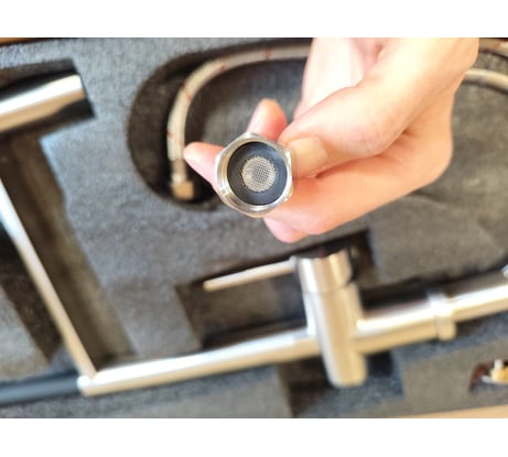 Нет возможности замены подводки. Отверстия для подводки находятся слишком глубоко внутри корпуса, прикручивается только вручную держа за шланг. Шланги подводки тоньше обычной М10, штуцер тоже не М10. Не подошла подводка М8 от Ростерм, в одно отверстие шланг вкручивается, а в другое нет. Режим душа работает только при удержании кнопки в нажатом состоянии.
