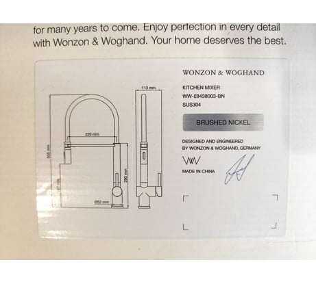 Смеситель для кухни Wonzon & Woghand с гибким изливом , Брашированный никель () WW-88438003-BN