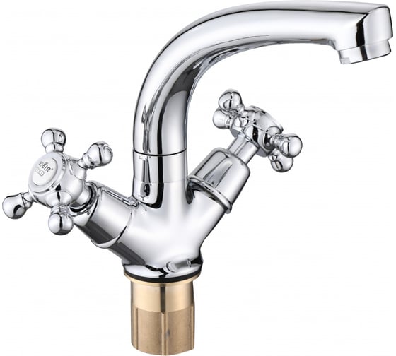 Свойства: Смеситель настольный, предназначен для установки на раковину, с подключением через резьбу 1/2 дюйма. Корпус выполнен из латуни с гальваническим хром-покрытием, оснащён керамическим картриджем диаметром 35 мм. Конструкция двухрычажная, с традиционной формой и округлыми линиями, предусмотрен один поворотный излив и гибкая подводка.