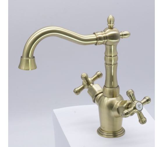 Двухвентильный смеситель для раковины в ретро-стиле с покрытием под античную бронзу станет выразительным акцентом в ванной комнате или на умывальнике. Округлый корпус и традиционные крестовые рукоятки подчеркивают классический дизайн, а поворотный излив обеспечивает удобство при ежедневных гигиенических процедурах. Настольное исполнение позволяет органично вписать модель в интерьер как классических, так и современных санузлов.