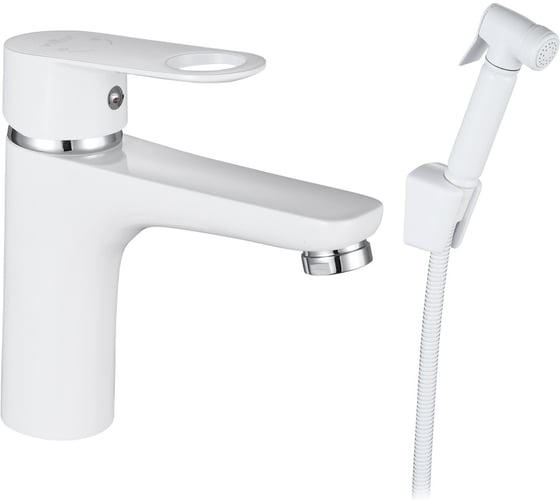 Смеситель для раковины ViEiR с подключением гигиенического душа однорычажный, латунь белый/хром, керамический картридж V043551-F