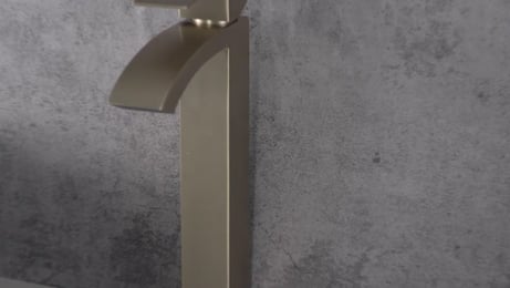 Прикольный смеситель на высокой ножке, изливается водопадом