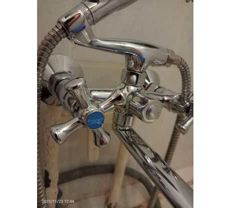 В комплекте нет прокладок для душевого шланга и держателя душевой лейки на стену. При повороте излива в сторону маховика холодной воды они очень близко и цепляешься рукой при открытии и закрытии маховика, что создает небольшое неудобство. Душевая лейка оказалась с небольшим дефектом - струи из некоторых сопел летят в стороны.
