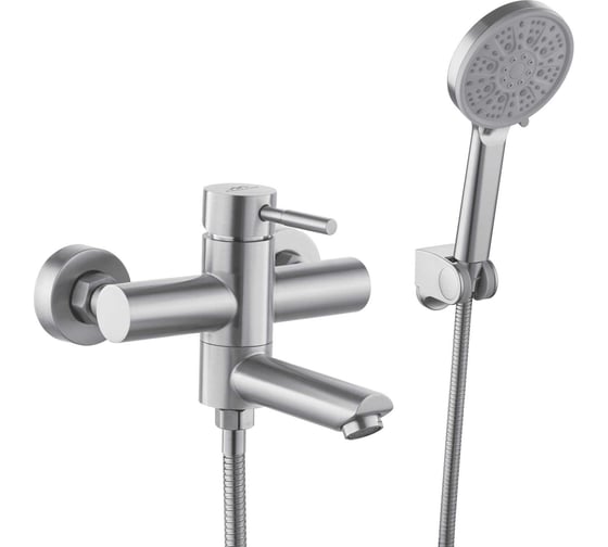 Ванно-душевой смеситель Fashun A53001 из нержавеющей стали SUS304 в цвете сатин — современное решение для ванной. Однорычажный картридж 35 мм обеспечивает плавное управление, короткий поворотный излив L=120 мм удобен для набора ванны, переключатель потока перенаправляет воду в душ.