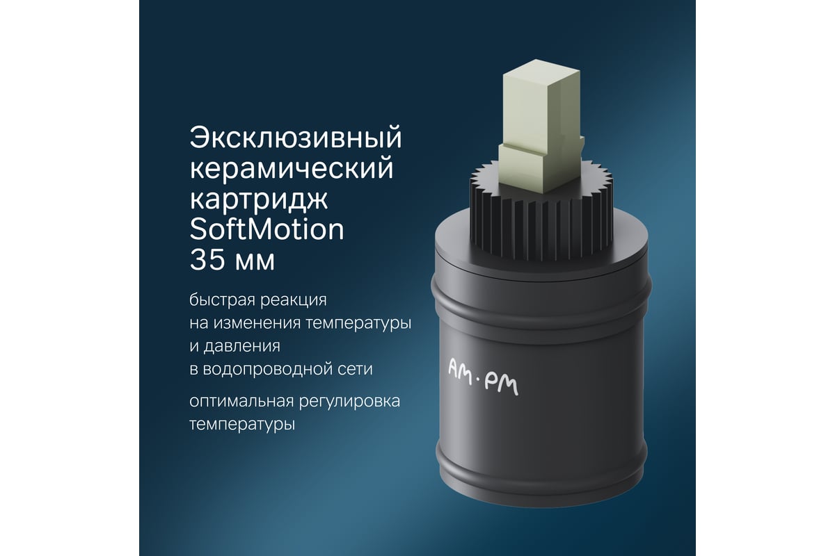 Смеситель X-Joy оборудован специально спроектированным для AM.PM керамическим картриджем SoftMotion 35 мм, который обеспечивает оптимальную регулировку температуры, а также позволяет выдерживать любые перепады давления.