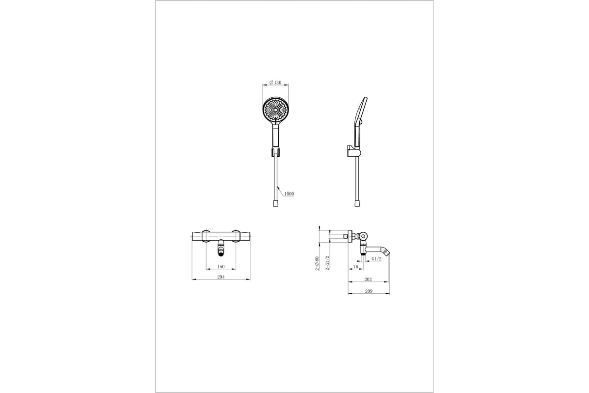 Смеситель для ванны с душем и термостатом Wonzon & Woghand темный графит WW-B3013-A1-BGG