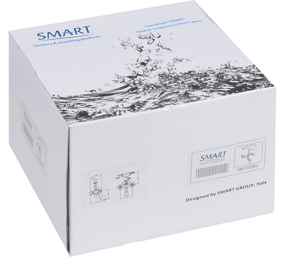 Смеситель для ванны SMT SMART короткий 350 мм с дивертером в корпусе, SM1009BC
