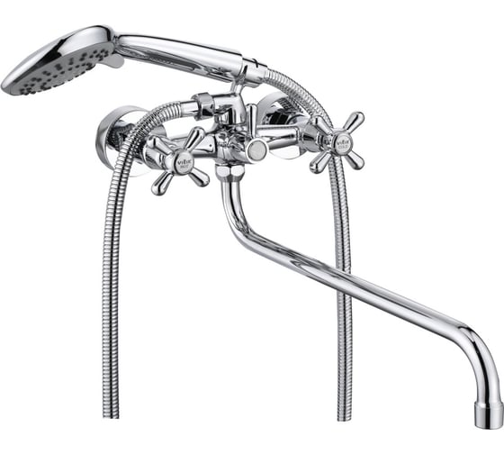 Смеситель для ванны ViEiR двухрычажный, с длинным изливом, латунь, хром, душевой гарнитур V120141