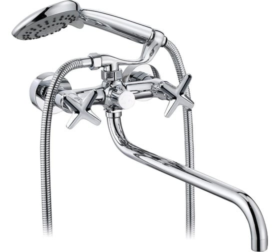 Смеситель для ванны ViEiR двухрычажный, с длинным изливом, латунь, хром, душевой гарнитур V140143