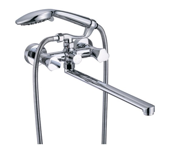 Смеситель для ванны ViEiR двухрычажный, с длинным плоским изливом, хром, душевой гарнитур V150141