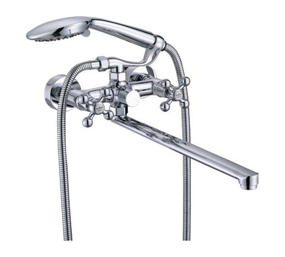 Смеситель для ванны ViEiR двухрычажный, с длинным плоским изливом, латунь, хром душевой гарнитур V140141