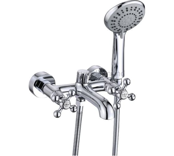 Смеситель для ванны ViEiR двухрычажный, с коротким изливом, латунь, хром, душевой гарнитур V140131