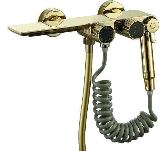 Смеситель для ванны ViEiR водопад, латунь, матовое золото с ручным душем и аэратором V323531-S
