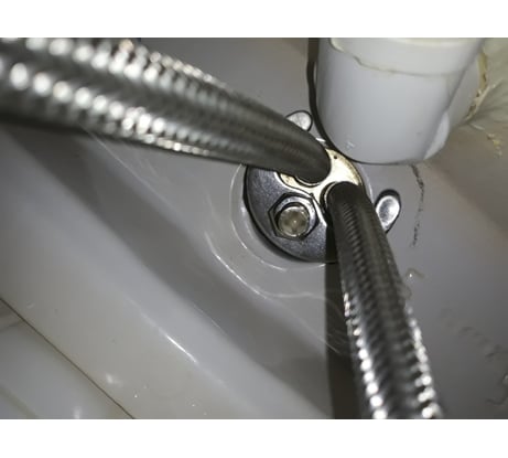 Крепление с одной шпилькой из за чего прокладка плотно не прилегает и под корпус смеситель подтекает вода (решается герметиком)