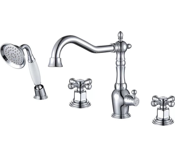 Смеситель на борт ванны ViEiR двухвентильный, хром, 4 отверстия, ручной душ ретро V370132