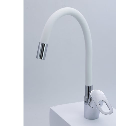Смеситель однорычажный для кухни ViEiR с высоким поворотным изливом и гибким шлангом, белый, V243521-F
