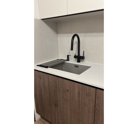 Для маленькой кухни и раковины может смотреться большим, качество на высоте, протирается легко. Больше месяца скользнём нет никаких нареканий