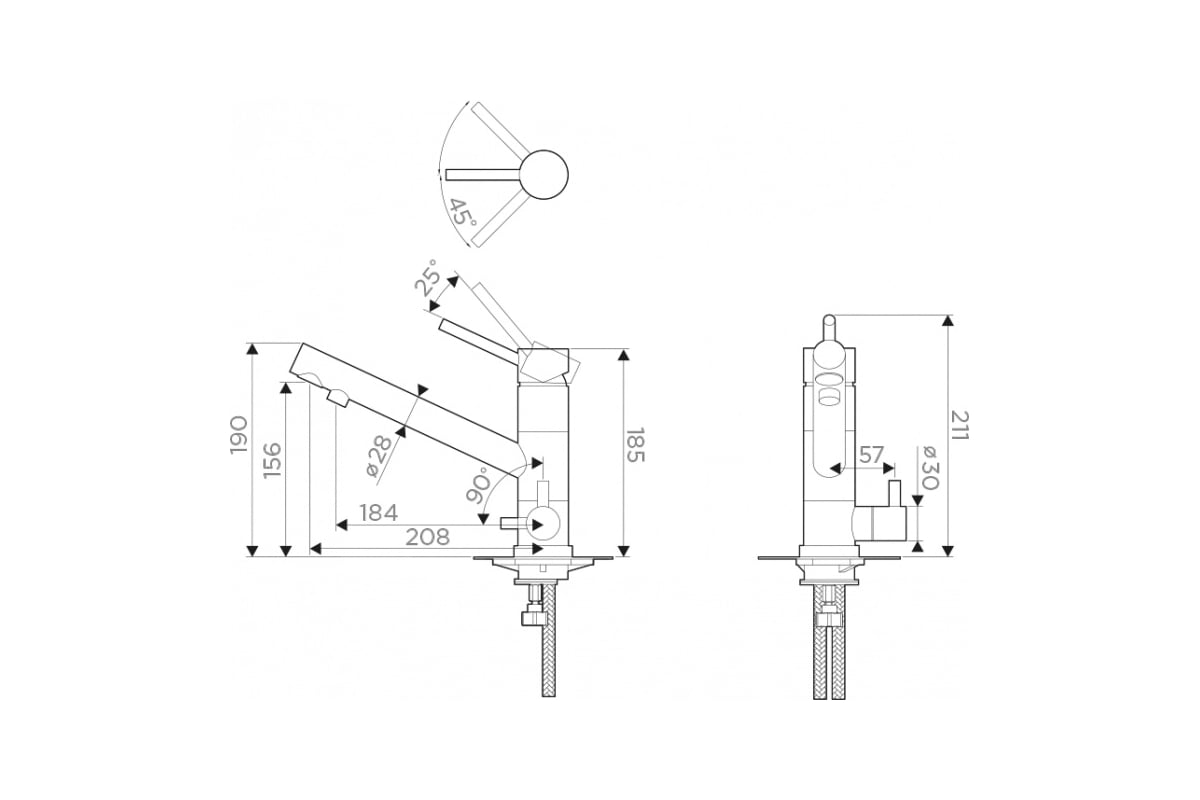 - Гибкая подводка в оплетке из нержавеющей стали.